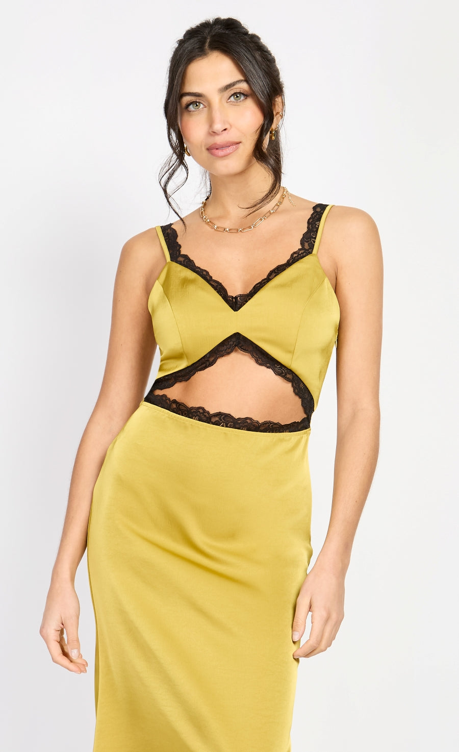 Olive Lace Trim Satin Midaxi by Chloe Lewis
