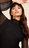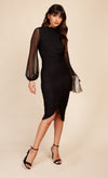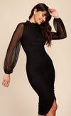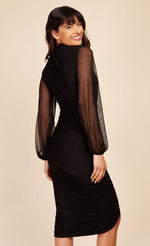 Black Spot Mesh Ruched Midi Dress