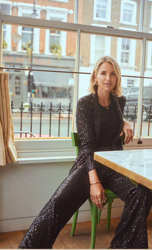 Black Velvet and Gold Diamanté Trousers by Vicky Pattison