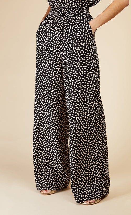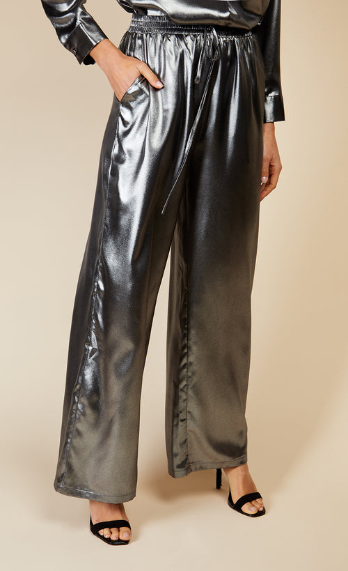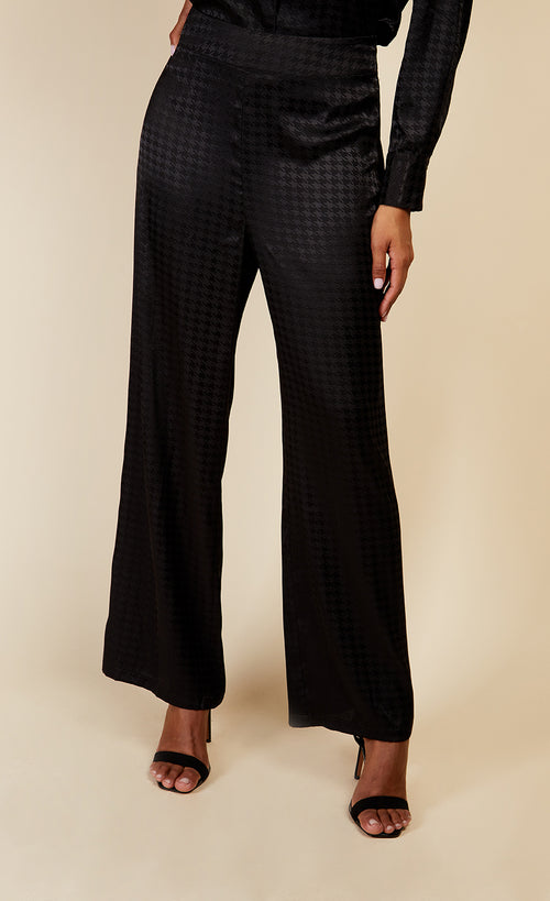 Lorena Chocolate Animal Texture Satin Wide Leg Trousers