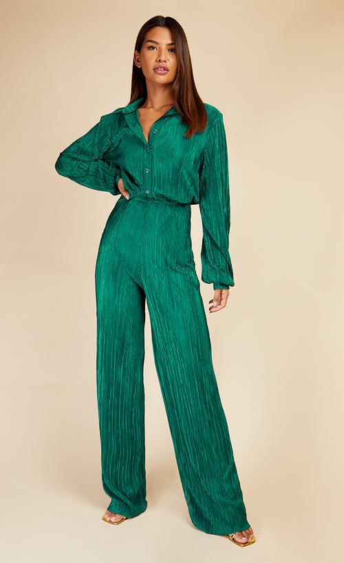 Red Crinkle Wide Leg Trousers by Vicky Pattison