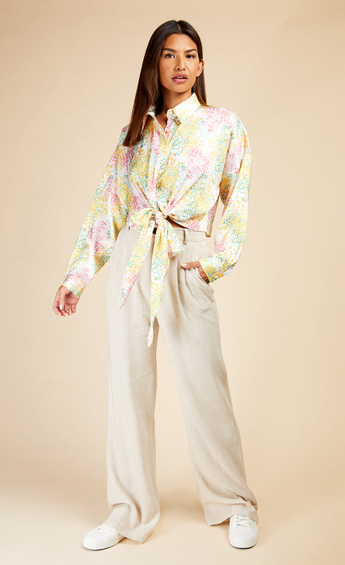 Lemon Floral Print Bow Detail Bandeau Maxi Dress