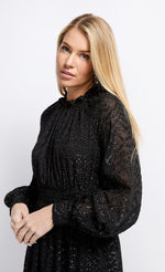 Black Metallic Texture Midaxi Dress