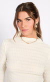 Introducing our Cream Waffle Top, a stylish and comfortable addition to your wardrobe. Crafted from soft, breathable fabric, it features a unique waffle texture that adds a touch of elegance to any outfit. The high neck, long sleeves, and regular fit make it perfect for layering or wearing on its own, while the versatile cream color pairs effortlessly with both casual and formal looks.