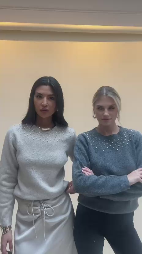 Dahlia Taupe Embellished Knitted Jumper